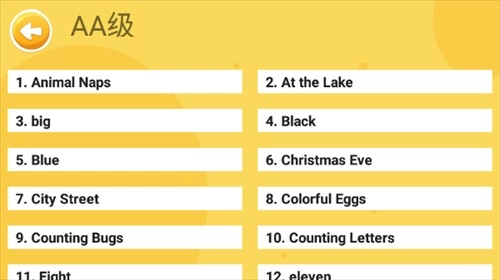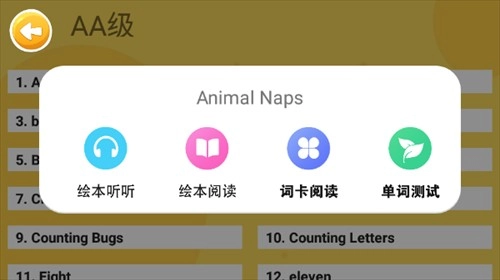 3、【AA级】栏目设有一些简单的单词学习内容,其难度呈逐步递增态势,家长能够依据孩子的学习进展自行挑选。