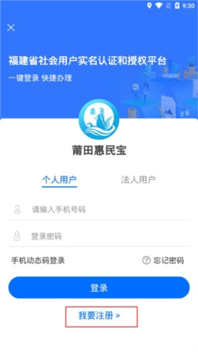 1、第一步,大家要先安装莆田惠民宝,安装完成后打开该软件进入。