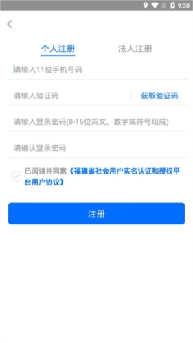 5、在此处填写个人直接信息,点击“已阅读并同意用户协议”,然后点击“注册”即可。