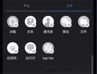2、创建完成后,在应用程序列表顶部,除了“个人”,还能看到一个“工作”应用列表。只需左右滑动,就能在这两个应用列表间轻松切换,十分便捷。而且工作空间的应用,其右下角都会带有一个公文包样式的蓝色logo。