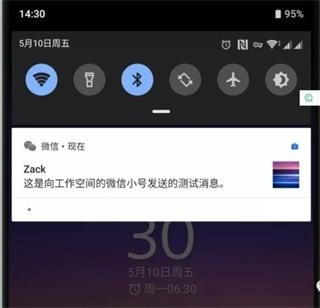 5、个人与工作空间中的相同应用,能够各自在主页桌面上生成图标,从而形成区分。而且工作空间的应用前缀还能添加不同符号。这两者的通知渠道相互独立,你可以为两个微信设置不同的推送声音。不过,推送过来的消息显示是相同的,只是会在右侧显示一个蓝色公文包logo。