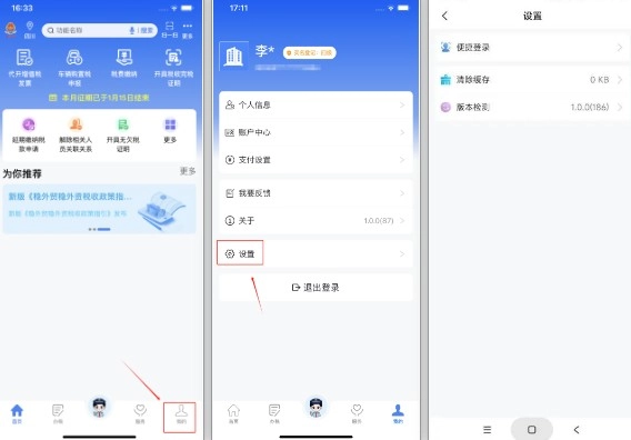 在电子税务局,除常规登录方式外,还能利用指纹或面容识别进行快捷登录。通过上述方式成功登录后,进入“我的”页面,点击“设置”,便能看到便捷登录相关选项。