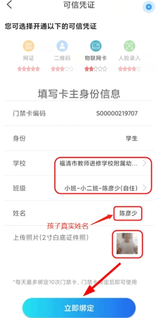 3、依次选择学校、班级、姓名,并上传一张2寸白底照片。