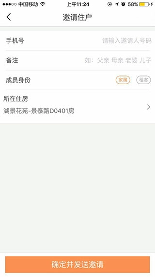 5、当进入住户管理界面后,点击界面下方的“邀请住户”选项。