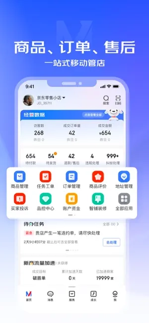 消息中心:商品资讯、订单详情、公告等内容,会即时推送至手机。与买家交流更为便捷,支持消息在多端保持统一,响应速度更快。