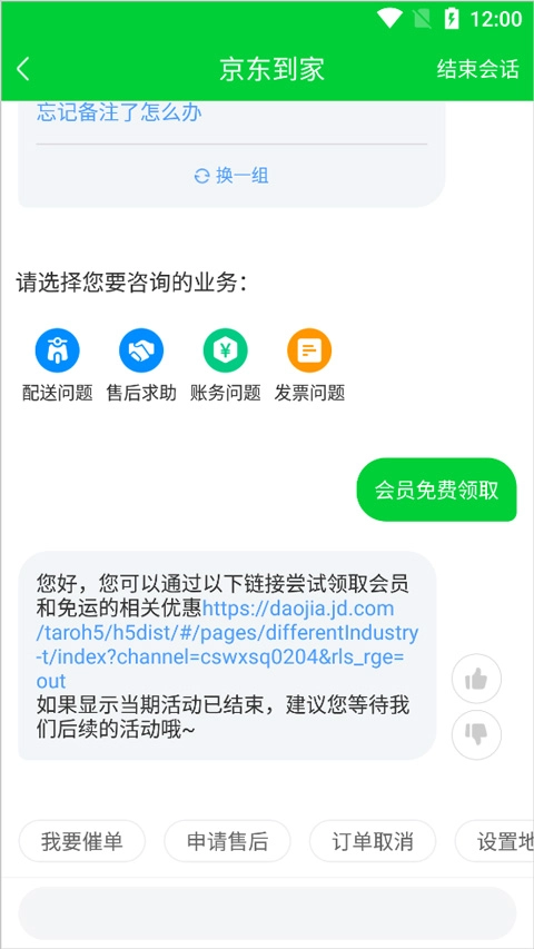 按照客服页面所展示的信息,用户能够通过点击此链接:https://daojia.jd.com/taroh5/h5dist/#/pages/differentIndustry-t/index?channel=cswxsq0204&rls_rge=out 来参与会员免费领取活动。