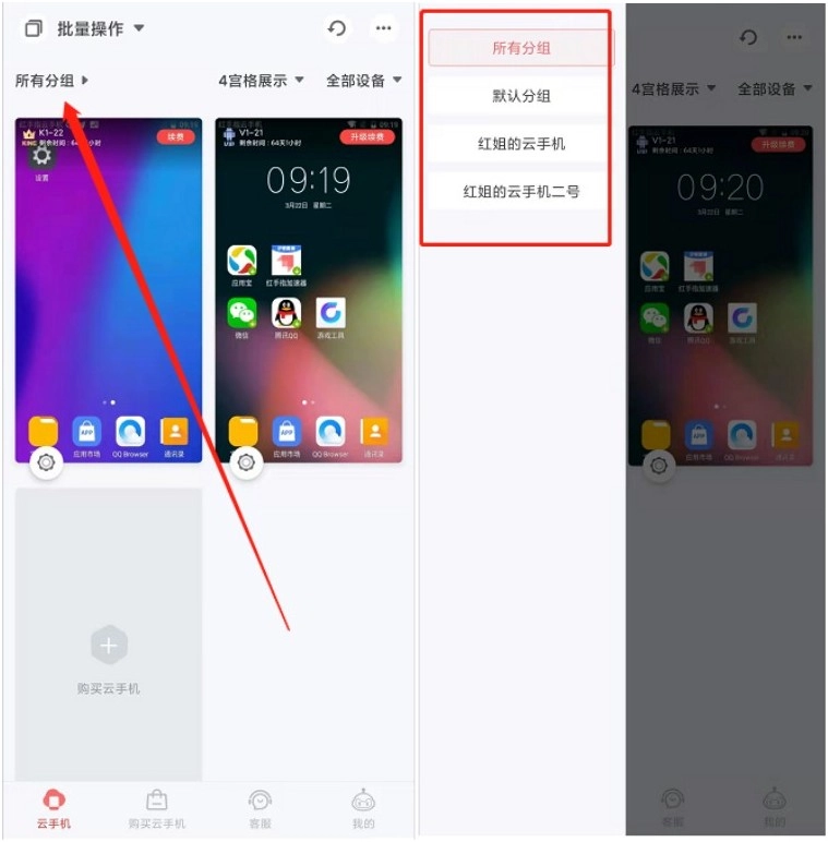 红手指专业版云手机分组与视图切换操作指南