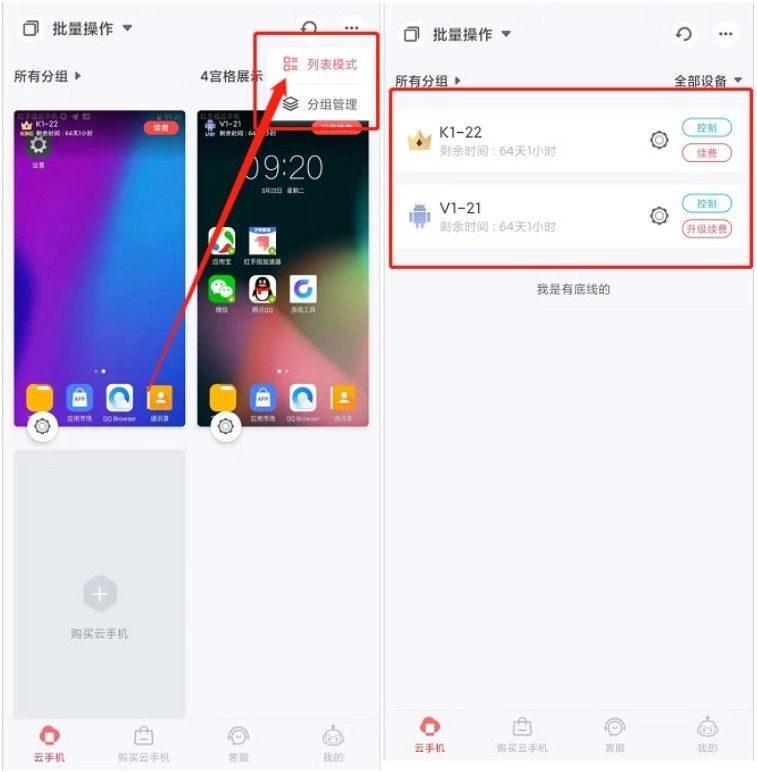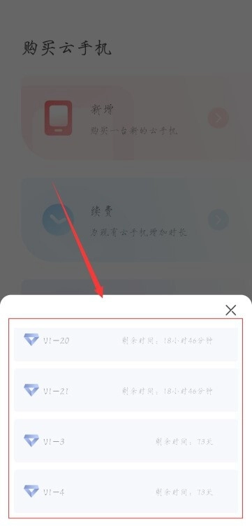 下面以Android系统云手机续费为例;