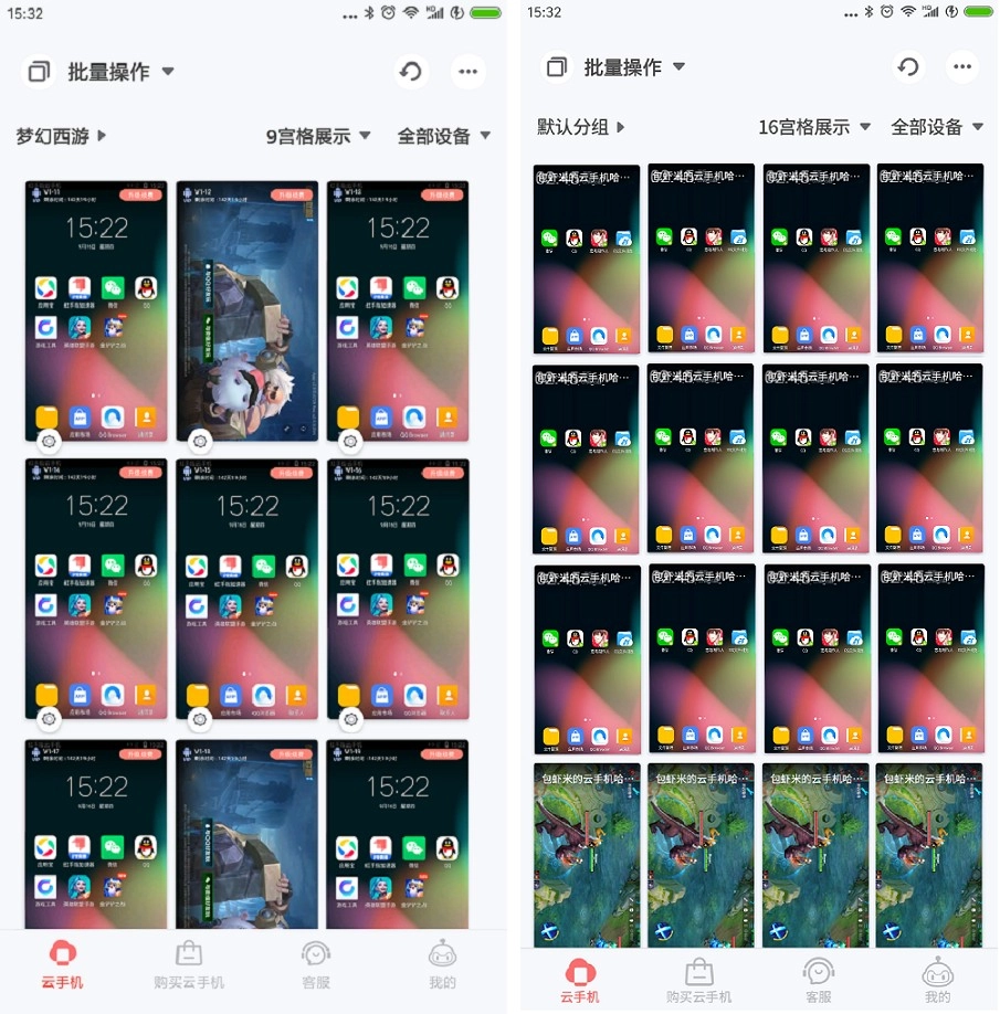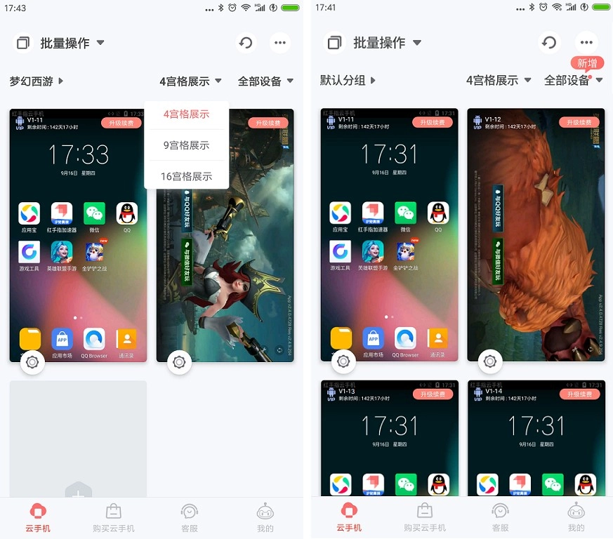 两台云手机四宫格展示 多台四宫格展示