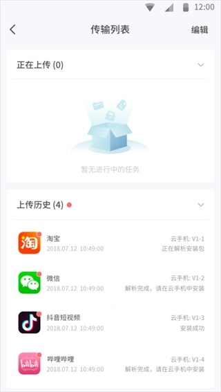 4、文件上传成功后,将在云手机内自动解析安装包,进行自动安装上传的应用或文件;