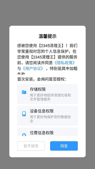 1. 安装本站所提供的手机清理王,进入该应用后,用户需授予相关权限。