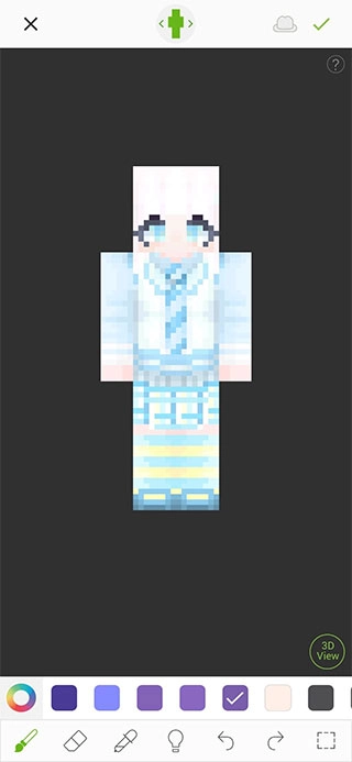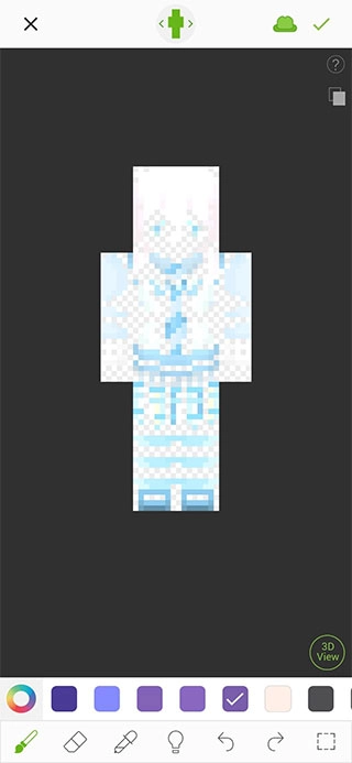 创作完成后,请把作品保存至相册。本应用支持两种尺寸的皮肤。需特别注意的是,人物皮肤是3D格式,并非普通的平面图片。