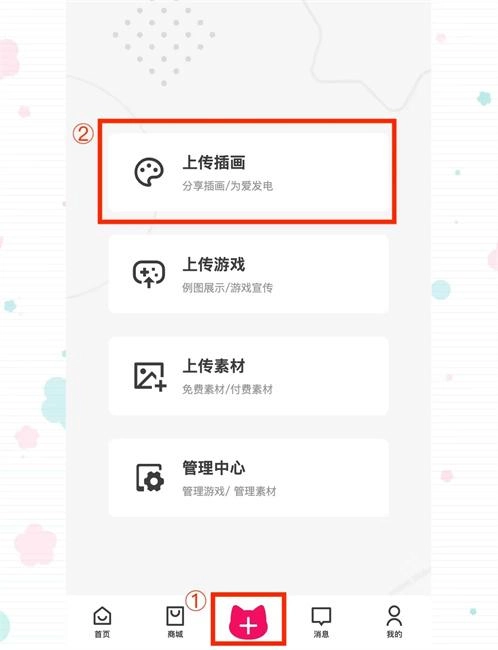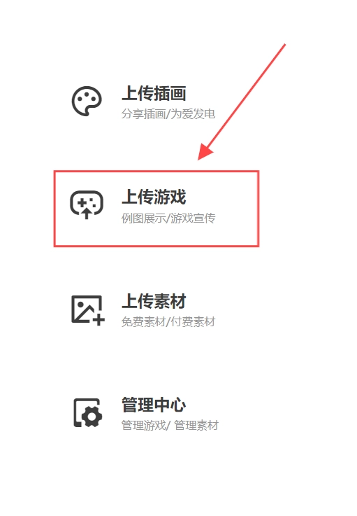1、可以上传游戏、上传素材、上传插画