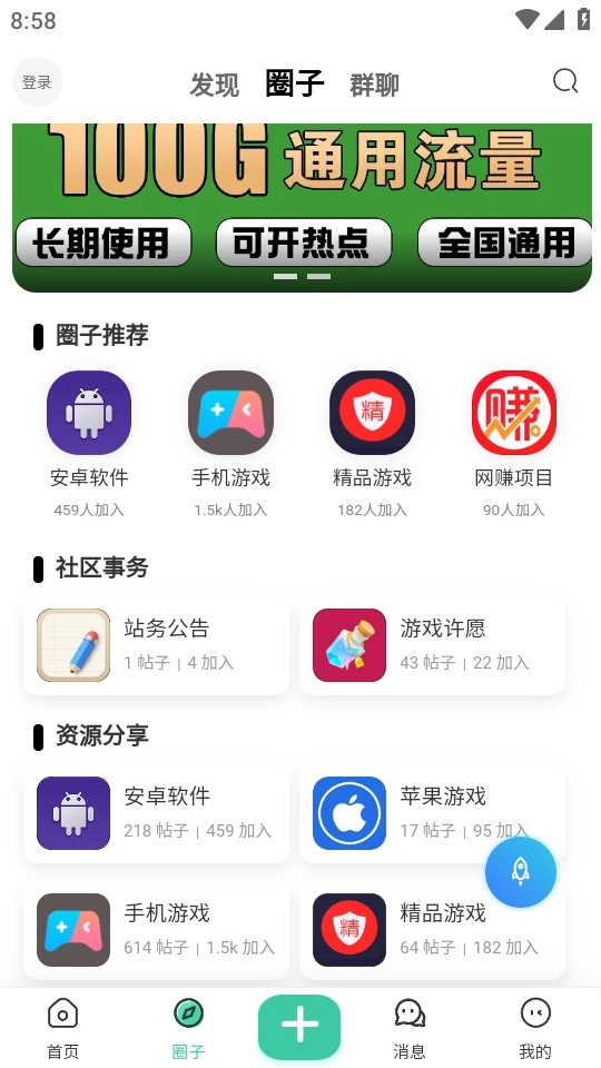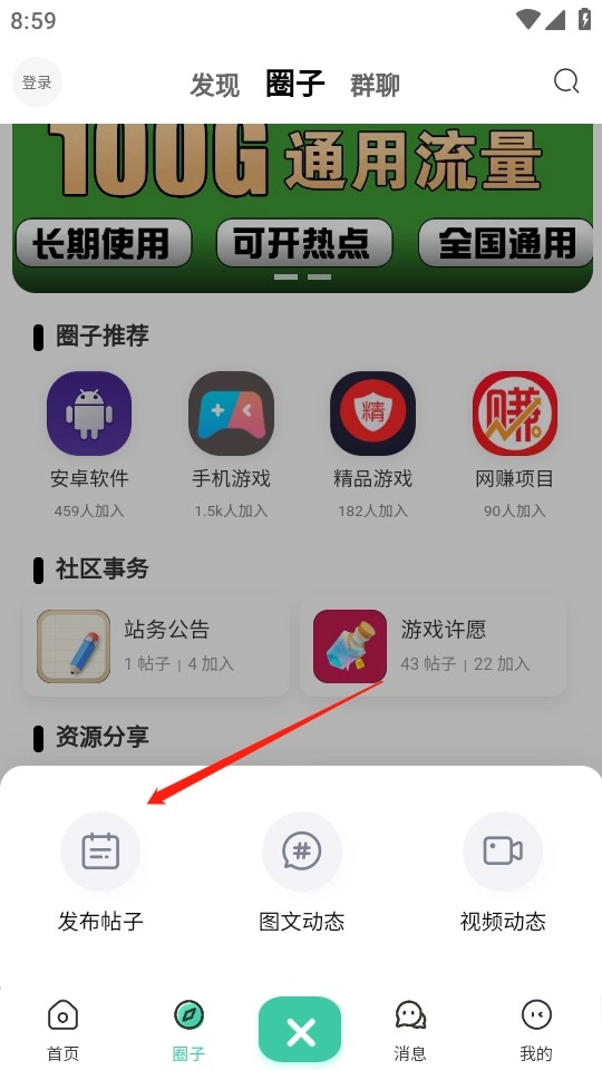 3、在“圈子”社区,你能够发现感兴趣的内容,还能加入群聊,与其他志同道合的用户一同交流。
