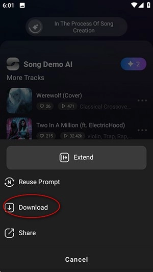 2. 挑选歌曲样式以及歌唱人员后,点击“Create”。