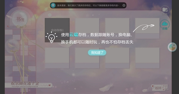 『云端存档』跟随你的账号,只要登录账号,就算更换设备也可继续故事之旅。