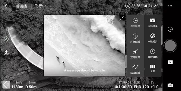 用户只需设置参数,无人机便会在预设时间内自动拍摄特定数量的照片,并生成延时视频。无论是处于未起飞状态,可在地面开展拍摄;还是起飞后,用户皆能通过打杆来自由操控飞行器与云台角度。