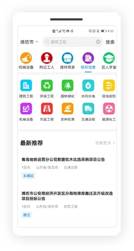 4、查询全国各城市、区域的安防、园林、市政工程招投标信息。