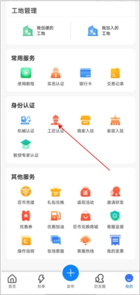 1. 完成工匠人软件的安装后,打开软件,点击界面中的“我的”选项,从中找到工匠认证入口。