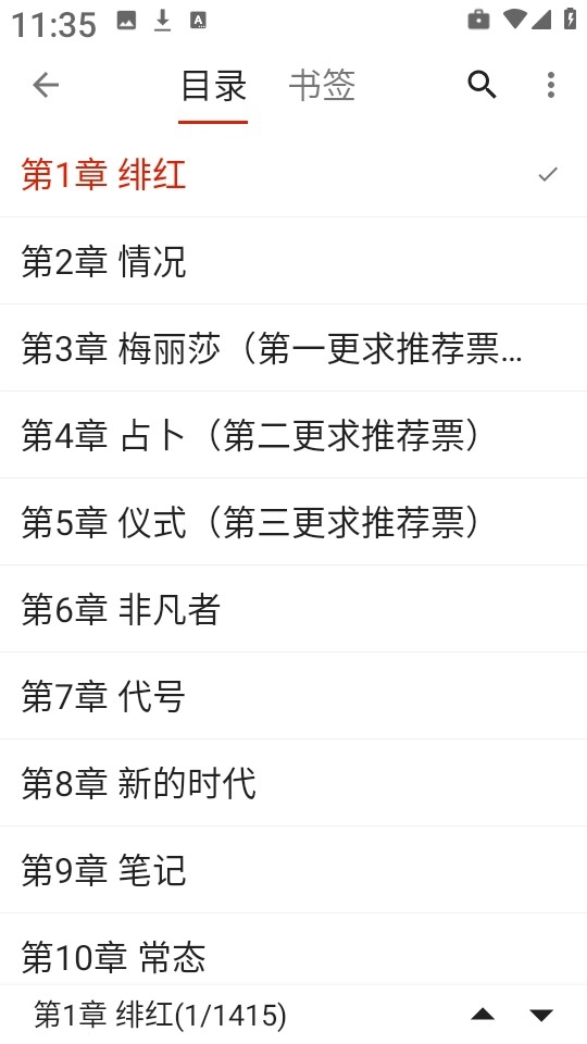 6、在阅读界面,可直接查看这本小说的全部目录内容,具体如图所示。