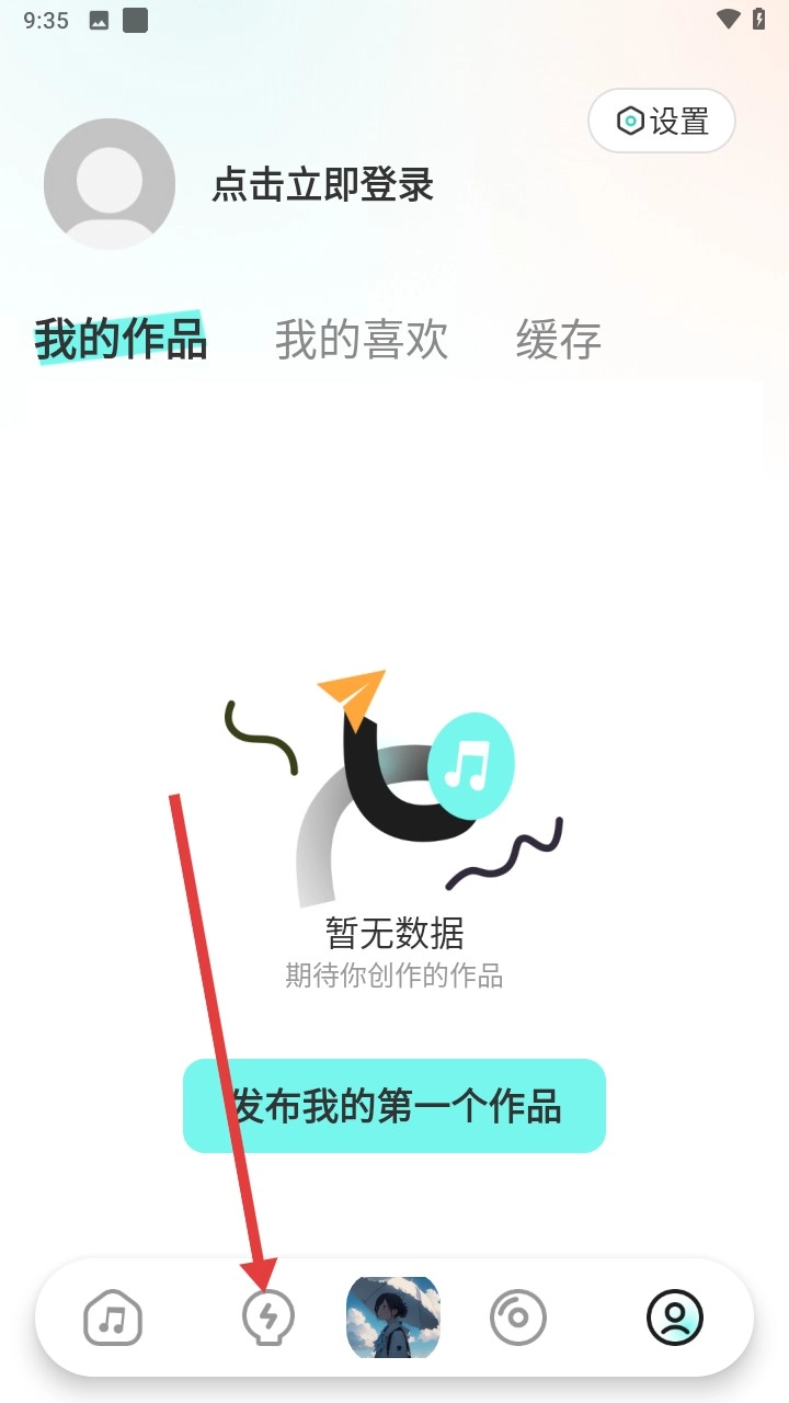 1、当进入免费车载DJ界面后,点击下方箭头所指向的按钮。