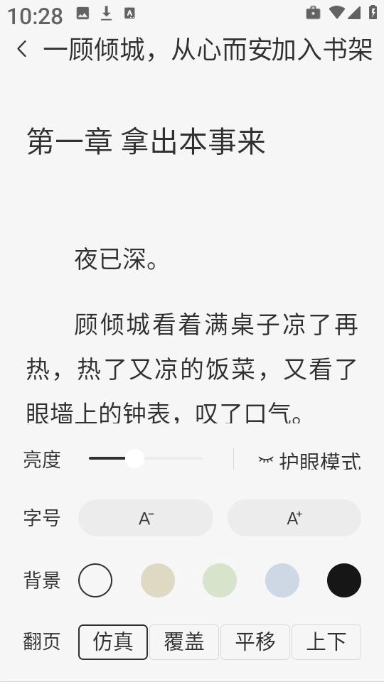 5、轻点右下角的设置按钮,就能对字号大小、背景颜色以及翻页模式进行个性化调整。