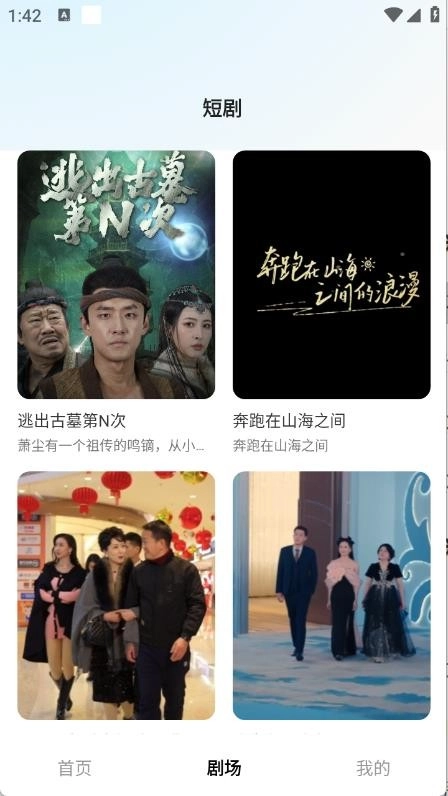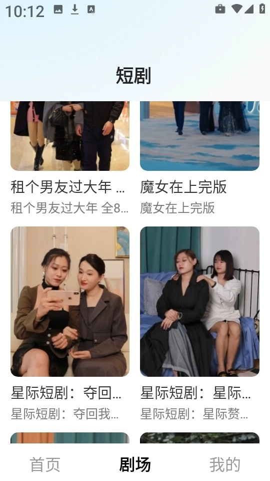 3、“剧场”页面汇聚了大量短剧资源,涵盖古装、都市、青春等各类题材。