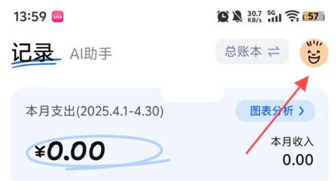 1. 打开已安装好的咔皮记账,点击右上角的【头像】,进入个人中心。