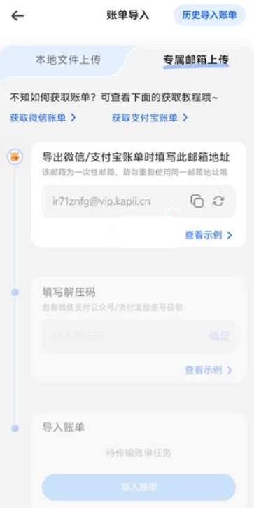 3、用户仅需在账单导入界面依照提示操作,成功导入账单文件即可。