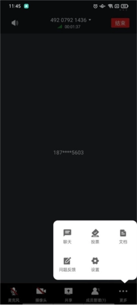 2、若你是会议主持人,需要开启会议,点击快速会议就能开始邀请成员,同时该功能还支持共享、投票以及文档操作。