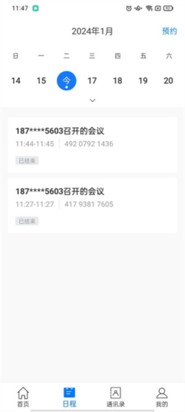 4、在日程安排里,你便能查看自己开启会议的记录。