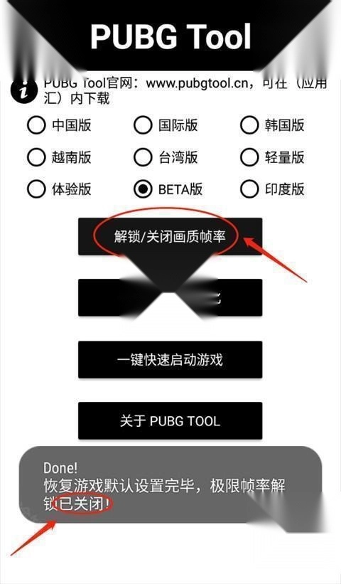 2、打开PUBGTool主界面,选择对应的PUBG版本(PUBG国际服体验服对应的是BETA版)。