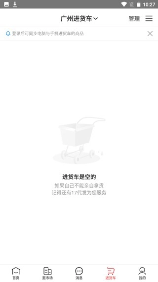 5、在进货车模块,我们所购买的商品都能在此处看到。
