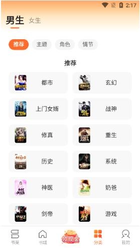 3、点击底部的“分类”选项,便可查看所有小说类别。