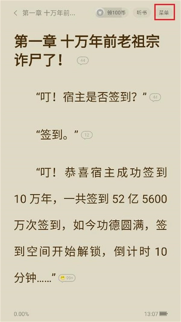 4.当进入阅读界面之后,点击位于右上角的“菜单”。