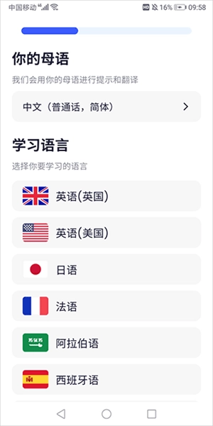 2、选定外语后,能够依据自身对该外语的熟悉程度进行分级学习。