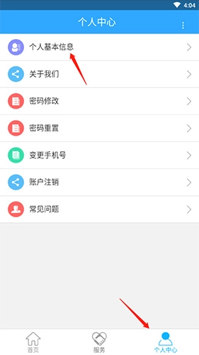 1首先,开启软件,接着轻点底部的“个人中心”按钮,随后再点击“个人基本信息”按钮。