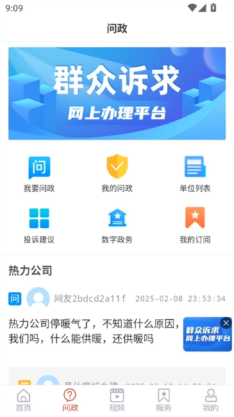2、处于问政界面时,我们可与政府单位展开一对一交流,助力解决生活中出现的各类问题。