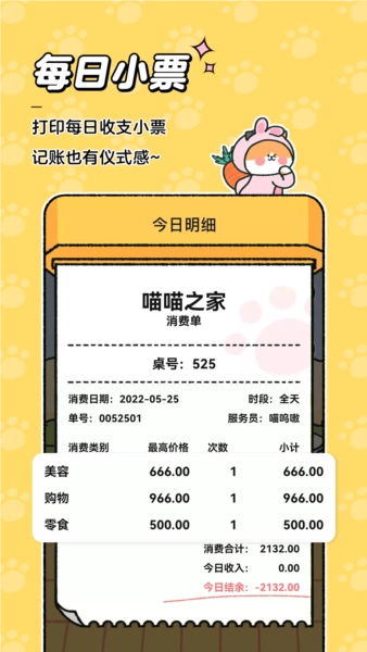 3、兼具可爱轻松的游戏风格以及实用的账目统计功能,支持周、月、年视图的自由切换。