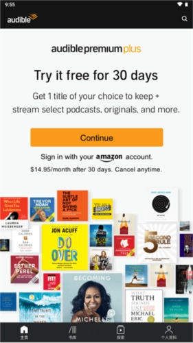 请使用您的亚马逊账号登录。若您尚未注册账号,可前往audible.com进行注册。