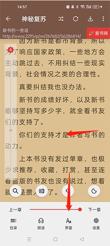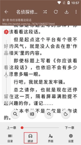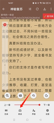 1、第一步,进入要朗读的小说页面,在页面任意处点击,此时会弹出朗读界面。