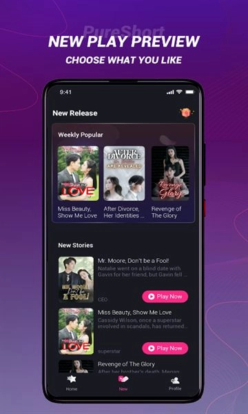 PureShort海外版能为用户呈现当下最新且最热门的短剧作品,海量优质好剧,精彩接连不断,用户每天都能观赏到不同类型的精彩短剧。