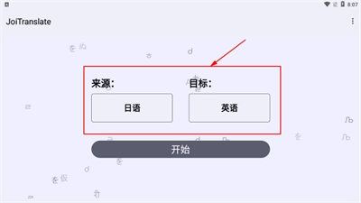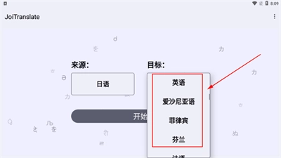 1. 打开JoiTranslate后,能够挑选需要转换的语言。