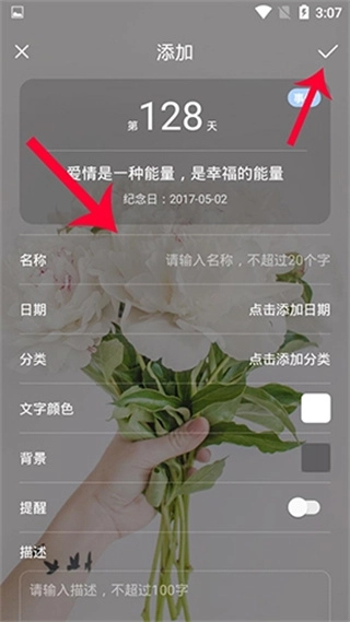 2. 填入你纪念日相关信息,接着点击上方的√,就能完成设置。