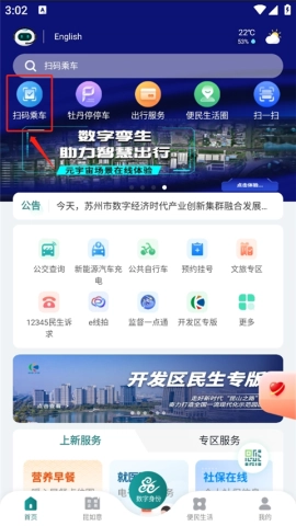 1、在主页上,选择“扫码乘车”按钮,操作简单直接。
