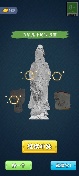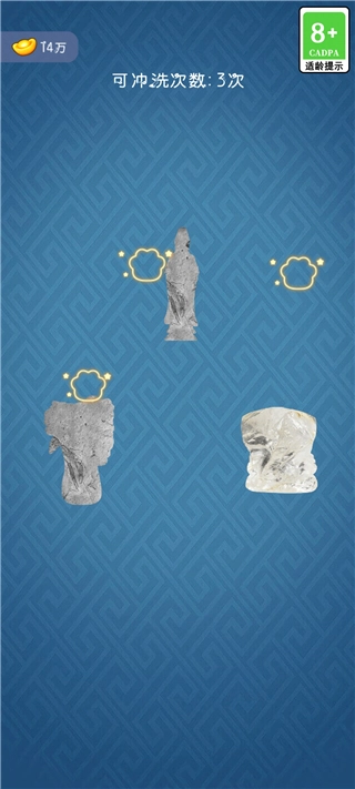 2、随机挑选一块石头进行勾钓,待结果出现后,从三个选项中,选出自己中意的古董。