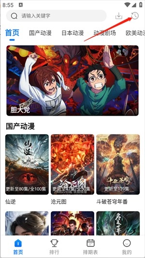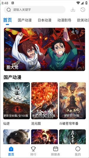 5、在排期表页面中提供了每日动漫更新情况