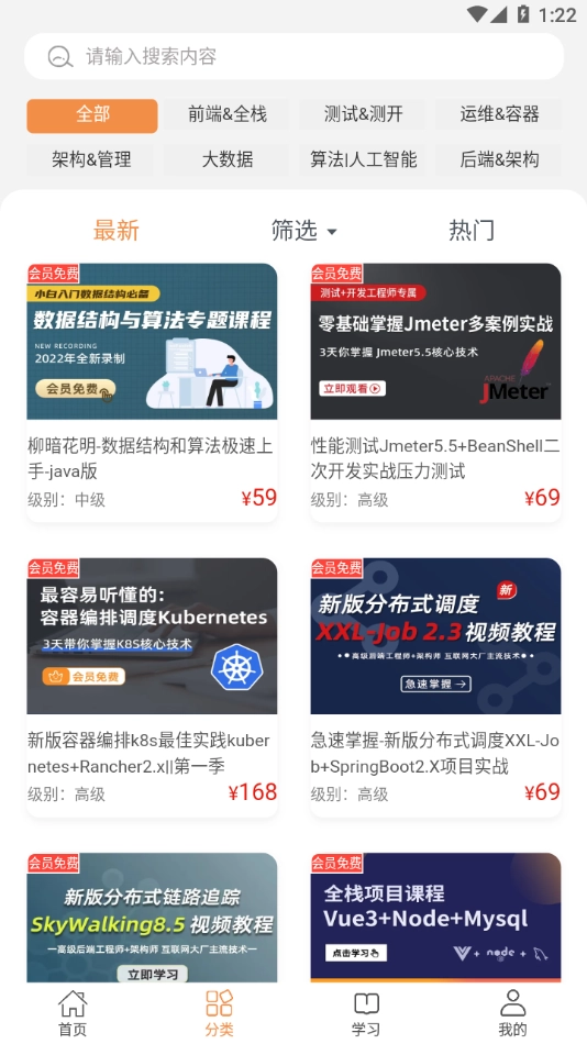 3、可以利用软件的搜索、筛选功能快速的查找需要的课程;