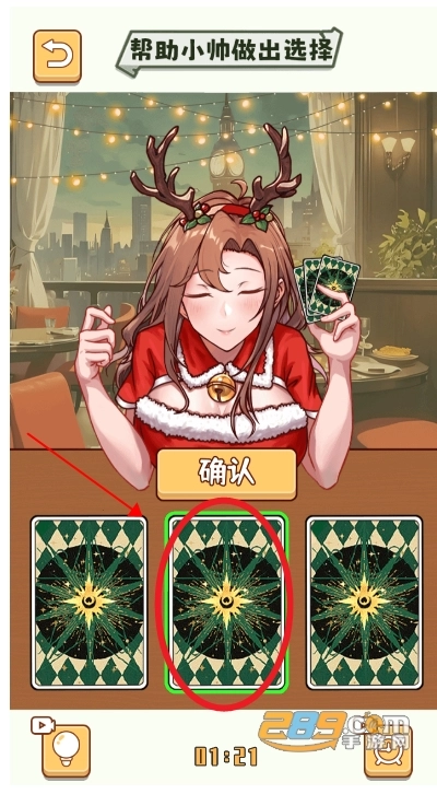 约会地点请挑选展示出睁眼微笑表情的卡牌。
