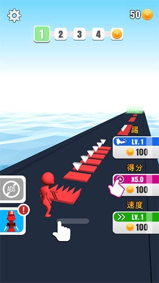 《搬砖我最强》是一款竞速闯关类游戏。其整体采用简约的游戏画风,玩家会在游戏里和其他几位玩家同台竞技,过程中要不断收集沿途碰到的砖块。这些砖块能帮助玩家在海面上搭桥,进而缩短前行距离。除了竞技模式,游戏还有闯关模式。在闯关模式中,游戏路面上有各种颜色的砖块,玩家需依据自身的颜色来拾取,只有拾取到足够数量的砖块,才能顺利通关。